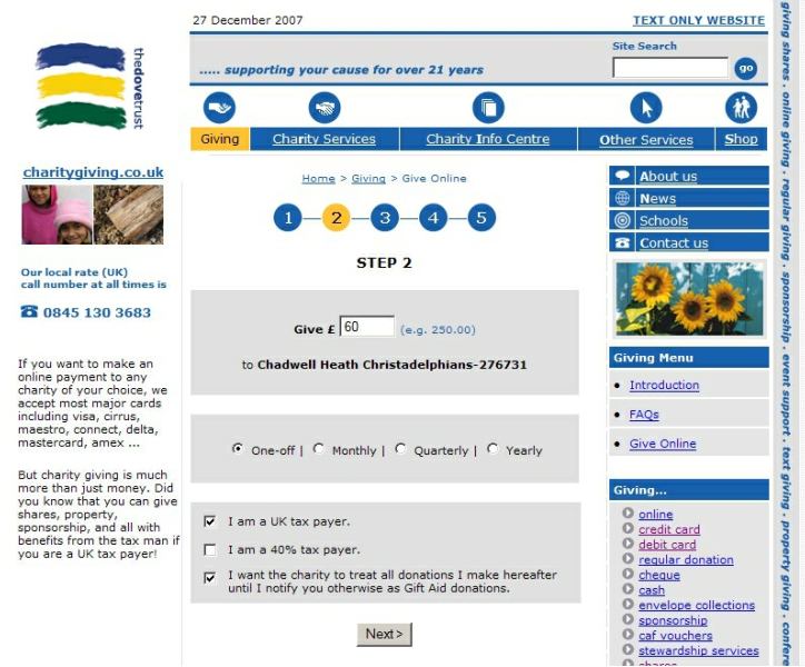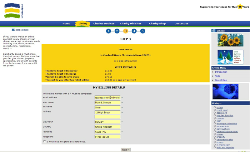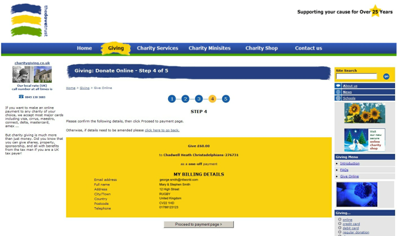 STEP 5 Fill in your details for payment. It is not necessary to open a CharityGiving account. It just saves having to re-enter your details for any future payments. When ready, continue and follow prompts to complete payment.